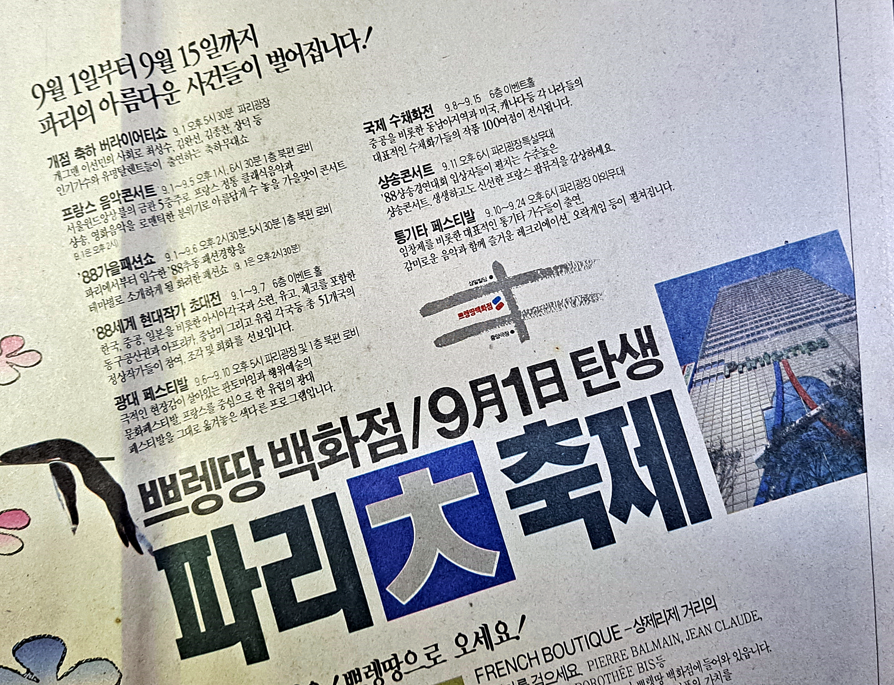 쁘렝땅 백화점 탄생 (88년) 신문 광고