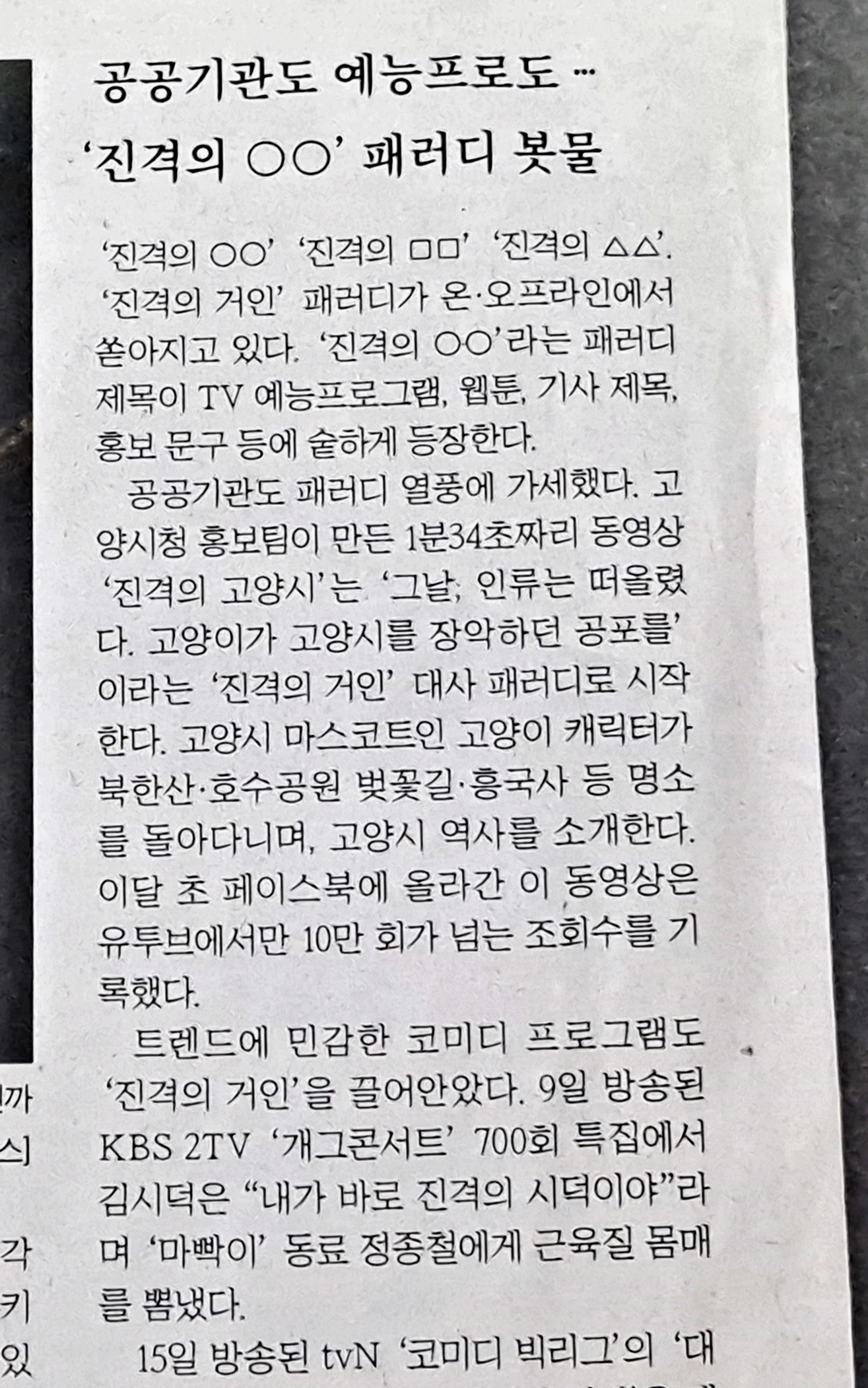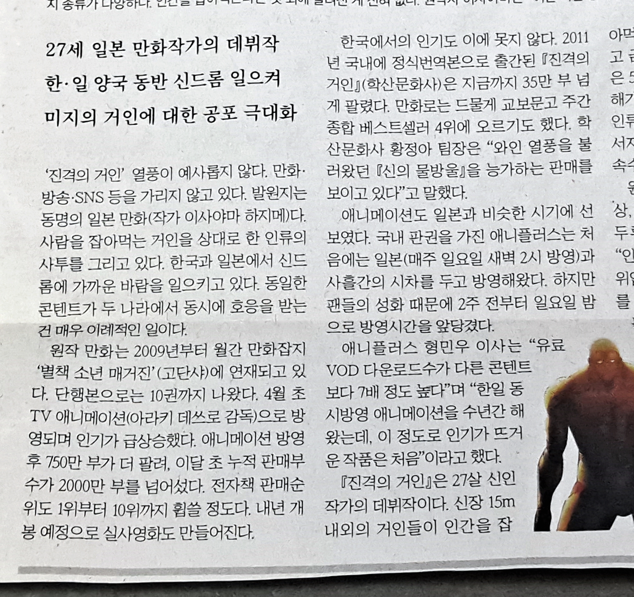 진격의 거인 신문 기사 입니다.
