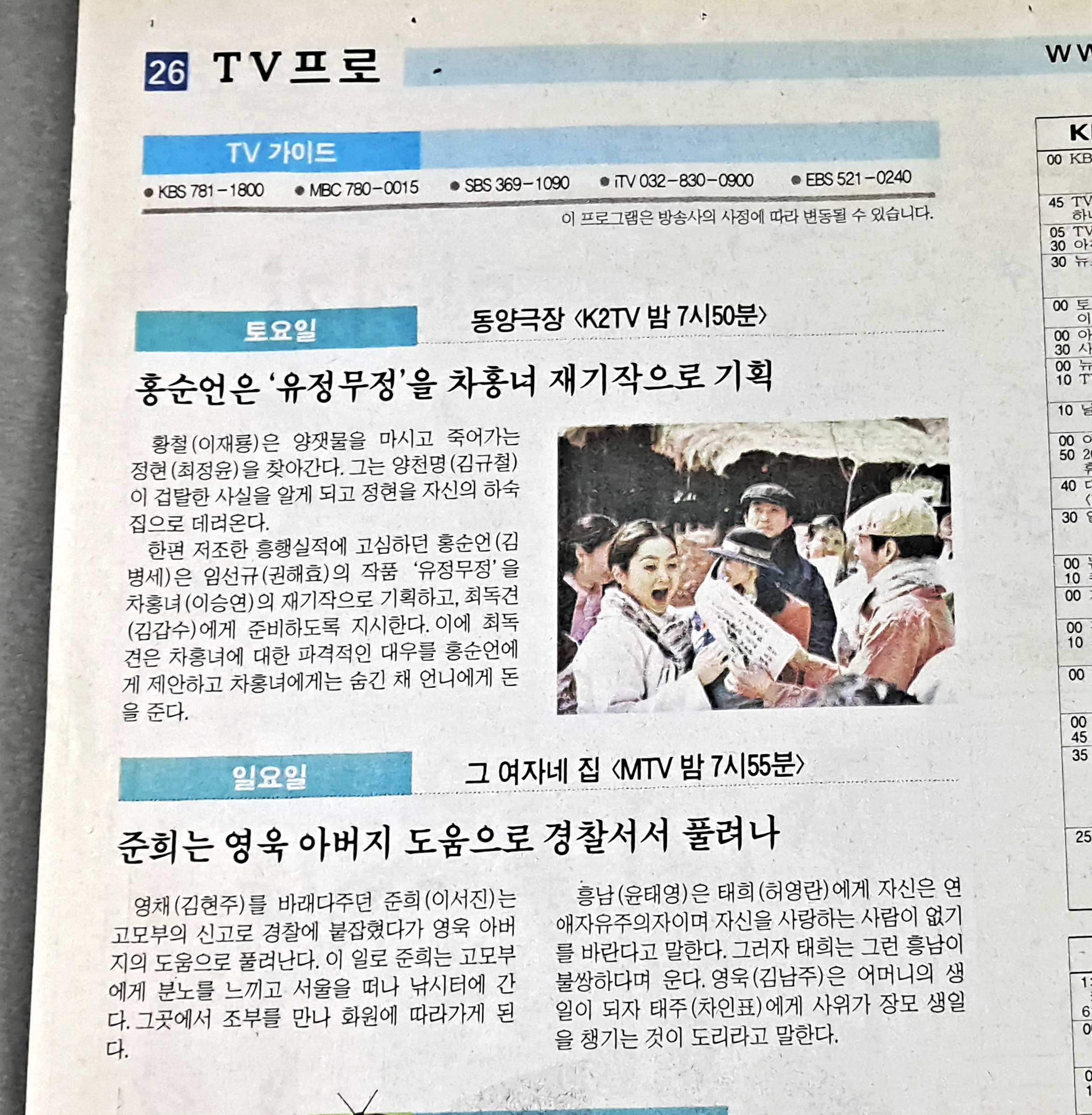 방송 편성표 올렸는데