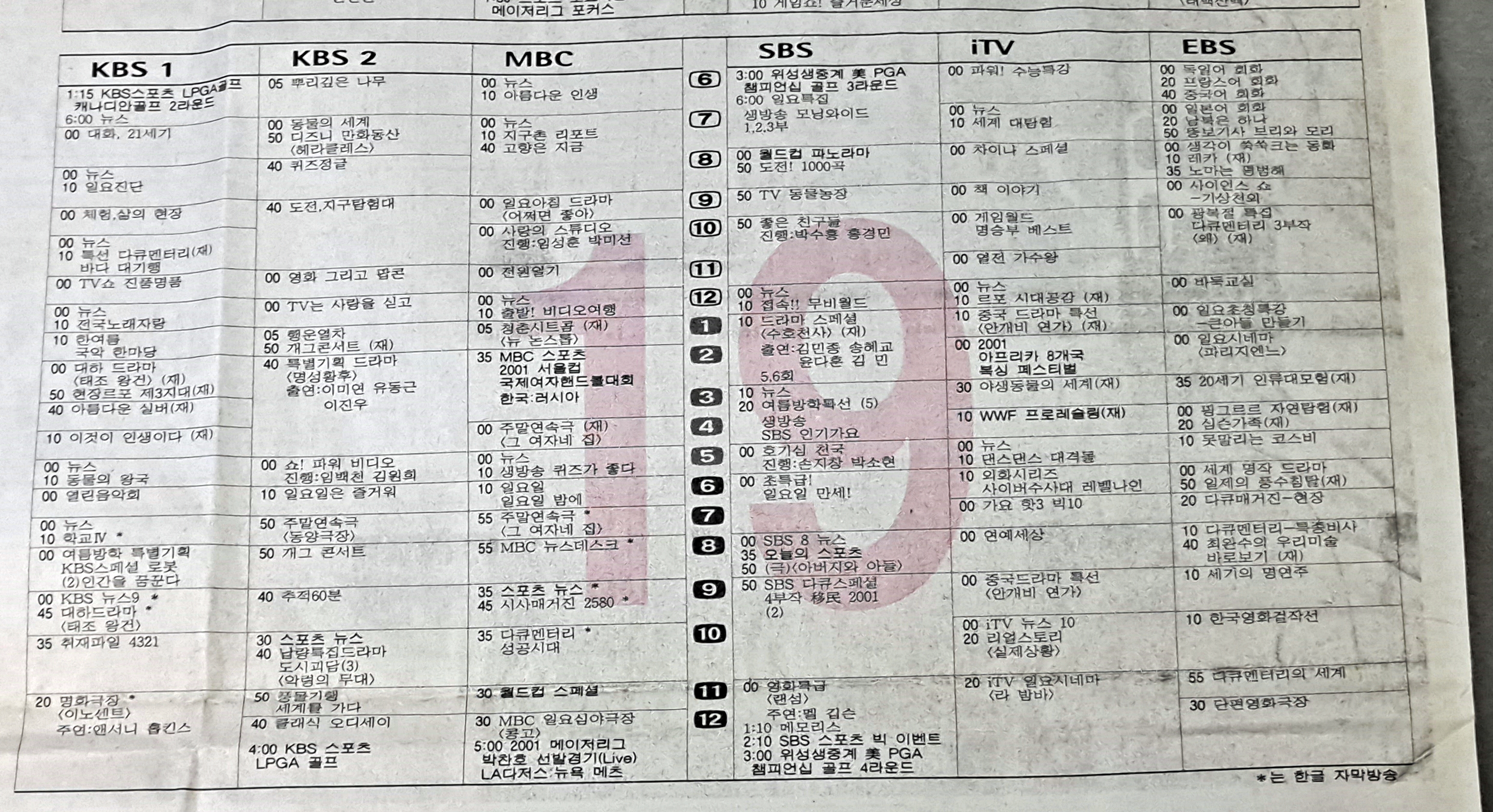 2001년 8월 19일 일요일 편성표