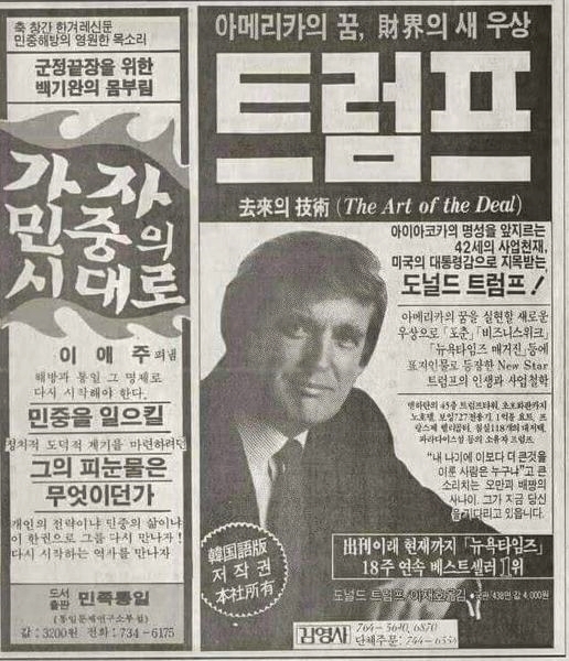 트럼프 자서전 (협상의 기술) 신문 광고