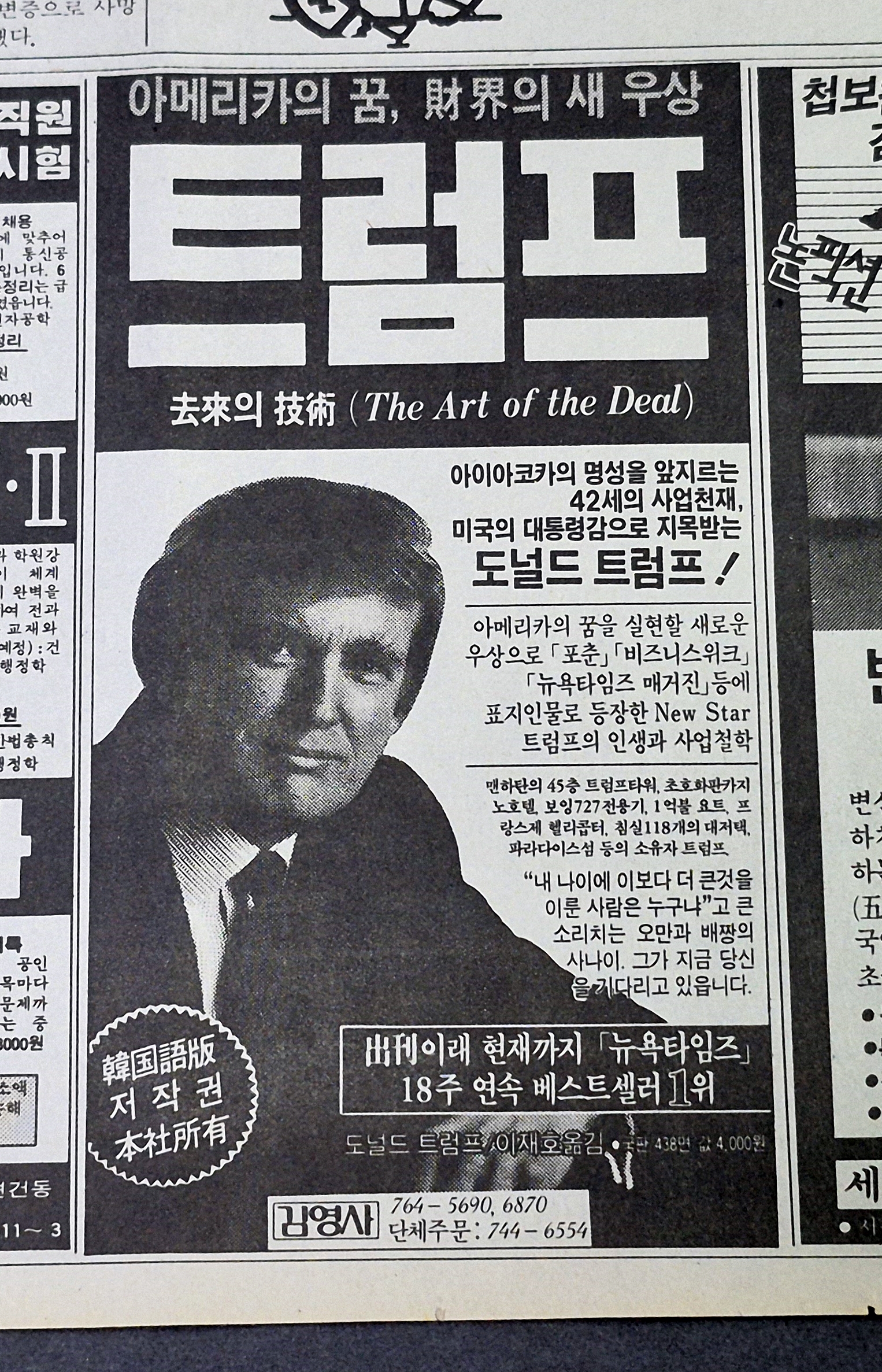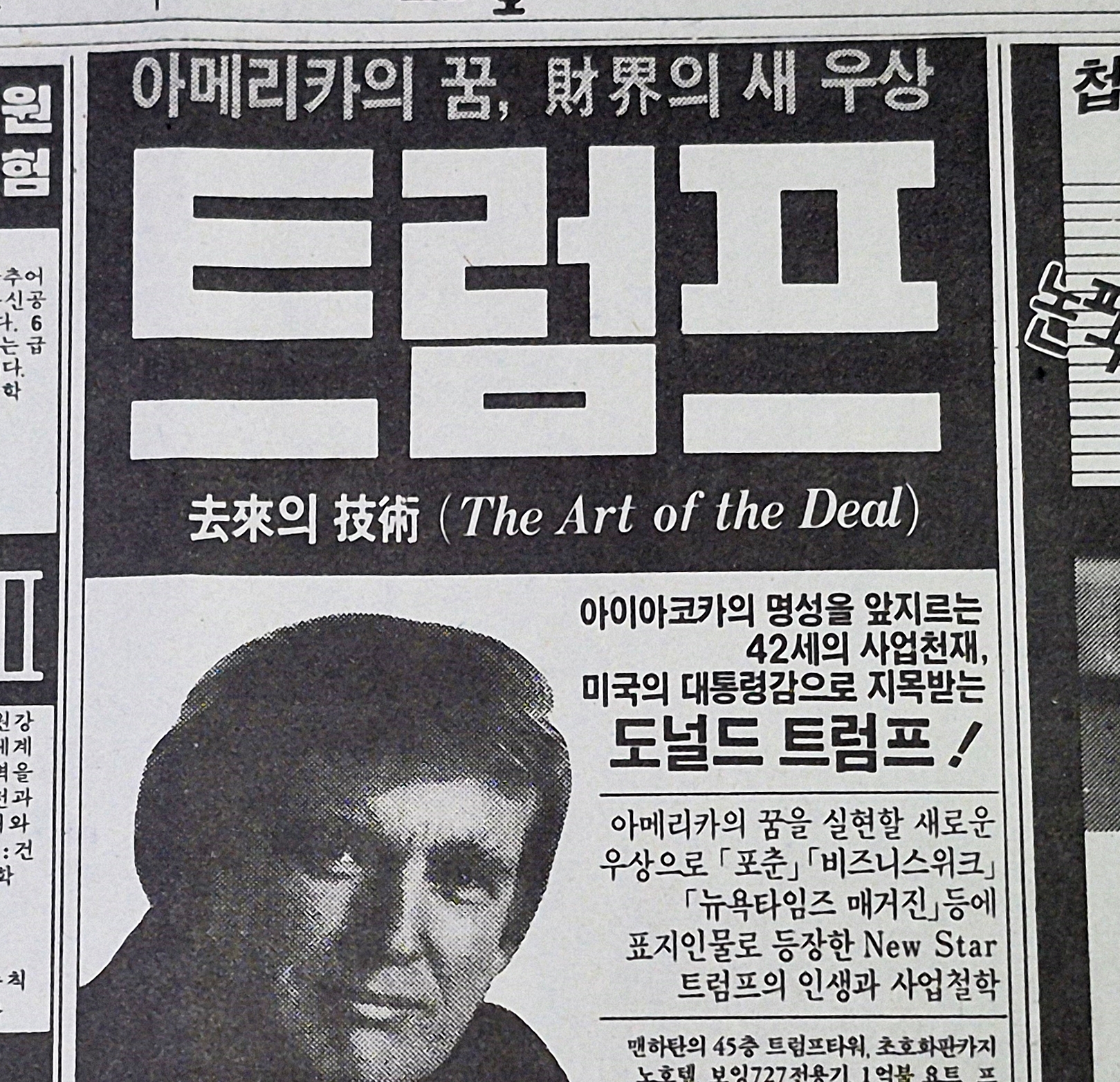 트럼프 자서전 (협상의 기술) 신문 광고 입니다.