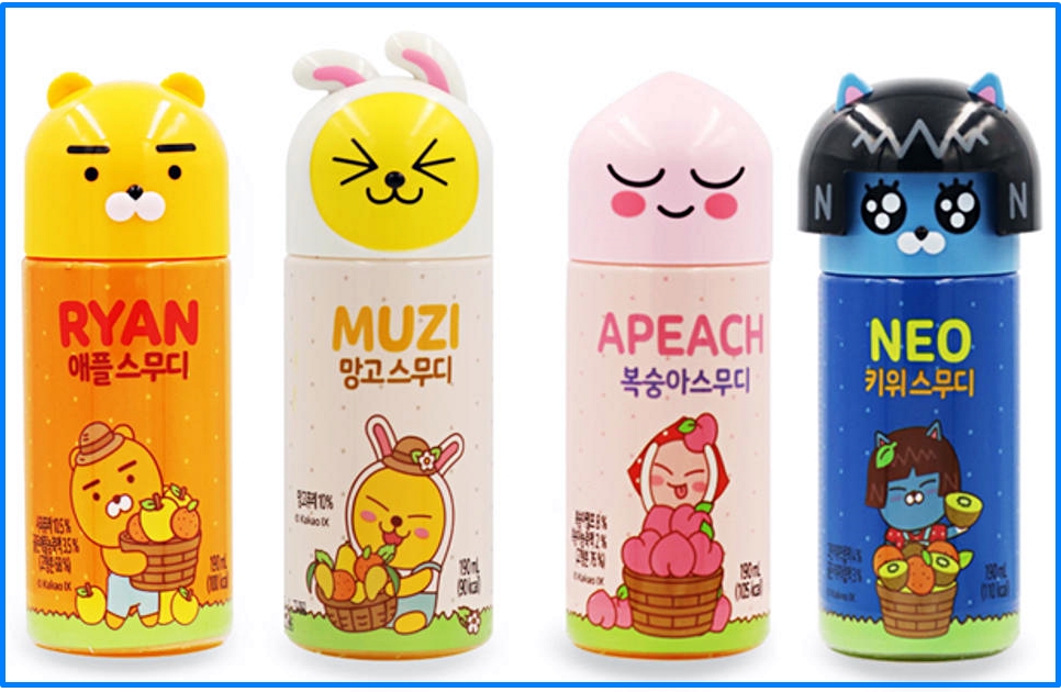 다른 음료수들과 다르게 뚜껑을 캐릭터 별로 만들어서